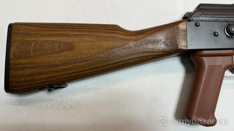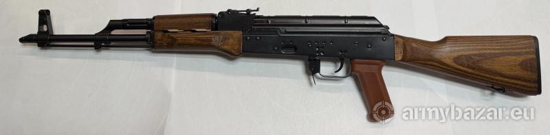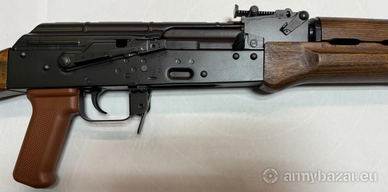 Opis: Karabinek samopowtarzalny AK Sporter S kal. 5,56x45mm (na bazie karabinka AK47) - kaliber: 5,56x45mm - działanie: broń samopowtarzalna, mechanizm działania oparty o długi skok tłoka - długość: 880 mm - długość lufy: 16,3 cala / 415 mm - gwint na końcu lufy - kolba: laminat drewniany - chwyt: polimerowy - łoże przednie: laminat drewniany, olejowany - osłona rury gazowej: laminat drewniany, olejowany - waga: 3,6kg BRAK MAGAZYNKA W ZESTAWIE