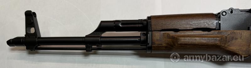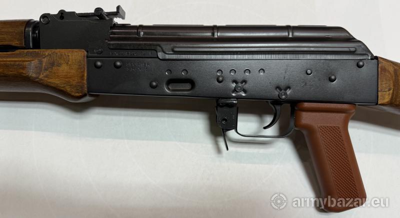 Opis: Karabinek samopowtarzalny AK Sporter S kal. 5,56x45mm (223Rem) - broń na bazie karabinka AK47 - kaliber: 5,56x45mm - działanie: broń samopowtarzalna, mechanizm działania oparty o długi skok tłoka - długość: 880 mm - długość lufy: 16,3 cala / 415 mm - gwint na końcu lufy - kolba: laminat drewniany - chwyt: polimerowy - łoże przednie: laminat drewniany, olejowany - osłona rury gazowej: laminat drewniany, olejowany - waga: 3,6kg BRAK MAGAZYNKA W ZESTAWIE