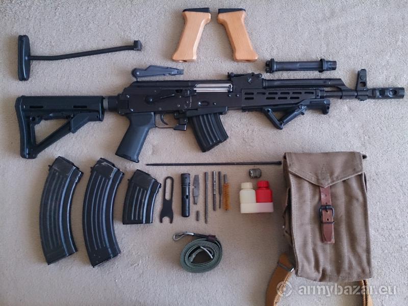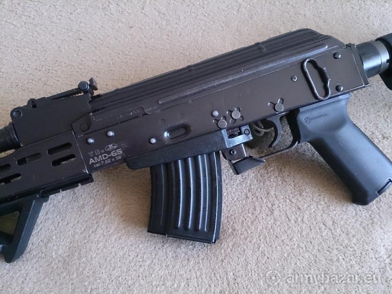 Opis: Witam, do sprzedania karabinek AMD 65 produkcji FEG kal. 7,62x39mm. Broń zakupiona osobiście w Słowacji w 2016 roku jako fabrycznie nowa przebieg aktualny 250 kulek. Wyposażony w dodatkowy osprzęt tj. szyna 22mm, chwyt przedni, lejek do magazynków, obustronny zwalniacz magazynka,przełącznik rodzaju ognia z półką, polerowane suwadło, chwyt pistoletowy Magpul, adapter kolby m4, prowadnica kolby m4, kolba Magpul CTR, 2 magazynki 30nab, 2 magazynki 10nab, ładownica, pas nośny, przybory do czyszczenia oraz komplet montaży do optyki w gniazdo szczerbinki lub na bok komory zamkowej. Dodatkowo fabryczny osprzęt tj. kolba składana, chwyty pistoletowe drewno buk, rura gazowa.przełącznik rodzaju ognia