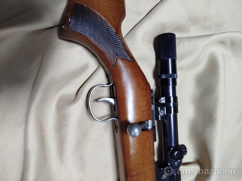 Opis: DOWÓZ CAŁY KRAJ.Niezawodny, prosty jednostrzałowy karabinek do strzelań rekreacyjnych oraz nauki strzelania. Broń bardzo lekka, wyposażona w proste przyrządy celownicze – nastawną szczerbinkę i stała muszkę ale także w szynę 11 mm na komorze zamkowej. Oferowany karabinek sportowy znajduje się w bardzo dobrym stanie stanie,100% oryginalny, zgodny numerycznie. Osada jak nowa, bez rys i wgnieceń. Do zestawu dołączona luneta. Długość broni 95cm, długość lufy 50cm Wiecej na stronie www.celnystrzal.com