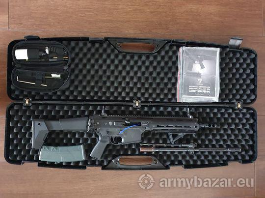 Opis: przedam karabinek Grot MSBS. Zakupiony w 2019r. w komplecie są 2 lufy 16 i 10,5 na druga promesę. Świeżo po gruntownym przeglądzie rusznikarskim - jak nowy. wystrzelane na lufie 16 około 4tys i na 10,5 około 2 tys. Dodatkowo kompensator cerber oraz chwyt kątowy przedni Magpul . tel 530919965