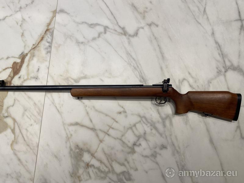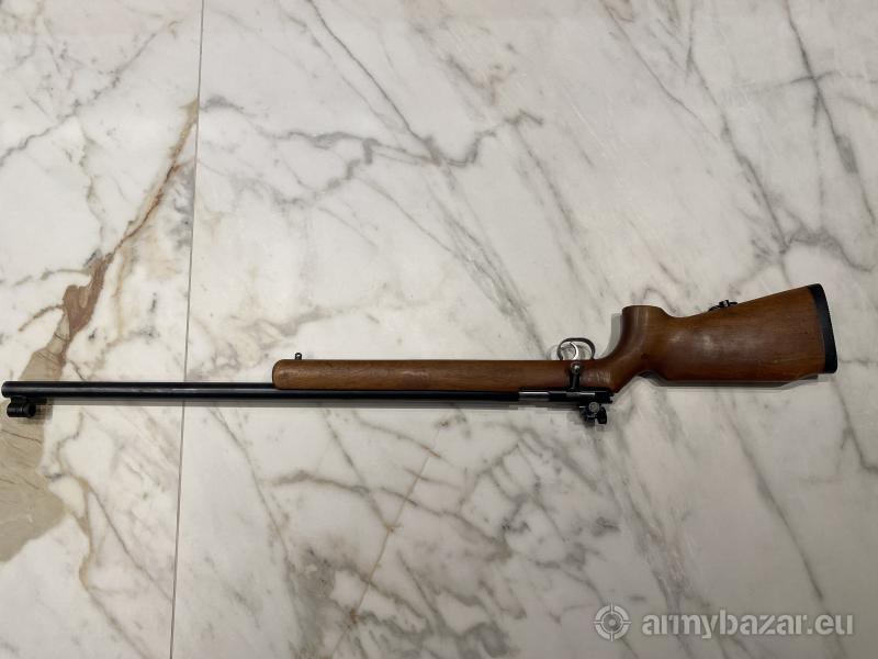 Opis: Używany precyzyjnie wykonany, ciężki karabin jednostrzałowy kalibru .22lr. Wyprodukowany w Danii przez firmę Schultz & Larsen M70 to precyzyjnie wykonany, ciężki karabin jednostrzałowy kalibru .22lr, charakteryzujący się wyjątkową celnością. Każdy jest wyposażony w kolbę wyczynową i regulowane otwarte przyrządy celownicze.