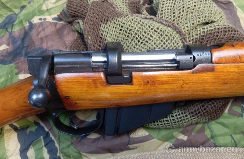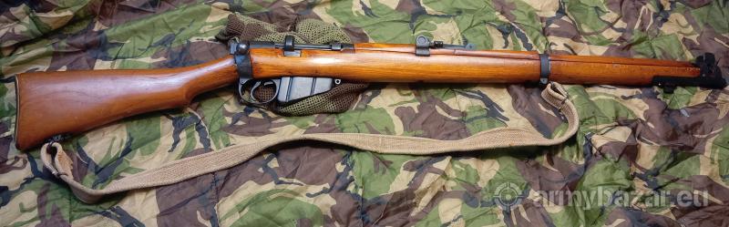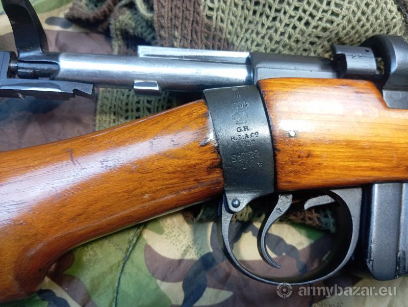 Opis: Oryginalny brytyjski karabin Short Magazine Lee–Enfield no1 Mk III, wyprodukowany w 1918 r., po wojnie przystosowany do kalibru .22 LR jako broń szkoleniowa w standardzie SHT .22 Mk IV ( czyli magazynek przechwytuje łuski po wystrzeleniu) Oznaczenia „GR”, data produkcji oraz bicia zgodne z epoką. Mechanizm sprawny, stan wizualny dobry – ładne drewno, czytelne oznaczenia.
