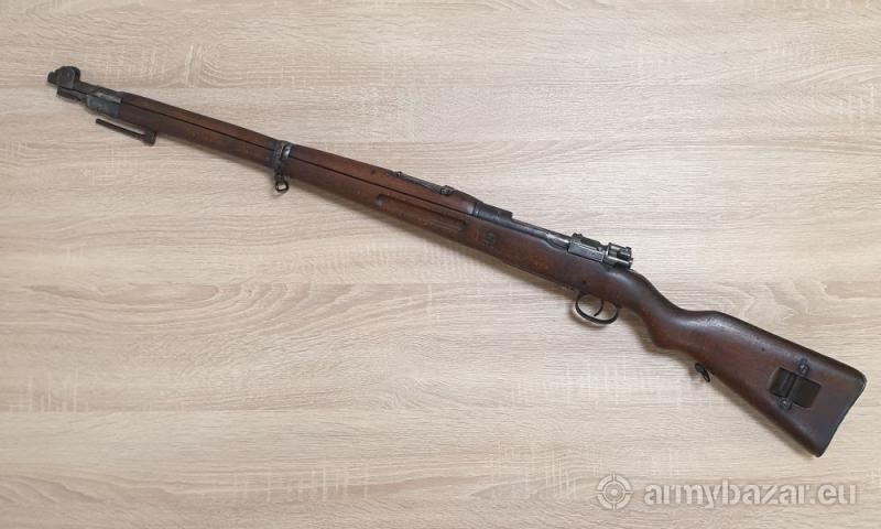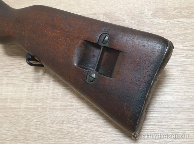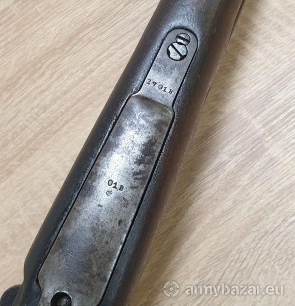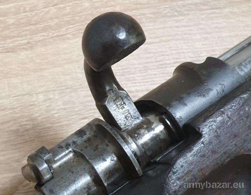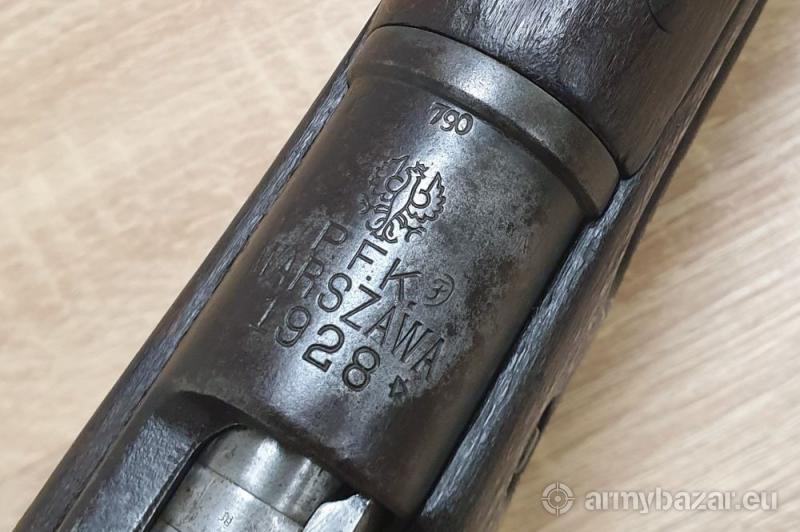 Opis: Kawaleryjski karabinek Mauser K98 P.F.K. Warszawa 1928r. Kal. 8x57IS Karabinek w oryginalnej, choć powycieranej miejscami oksydzie. Pod drewnem ładny, czarny, brak wtrąceń korozji. Drewno też wygląda ładnie. Broń tylko częściowo zgodna numerycznie - patrz zdjęcia. Kolba na jakimś etapie została zamieniona na inną, też od polskiego egzemplarza. Zamek również zamieniony - od bliźniaczego pruskiego karabinka. Stan techniczny BDB. Przewód w dobrym stanie, nie świeci się ale matowy też nie jest. Gwint wyraźny. tel. 667 861 464 - Gunsale Całość prezentuje się dobrze, polecam!