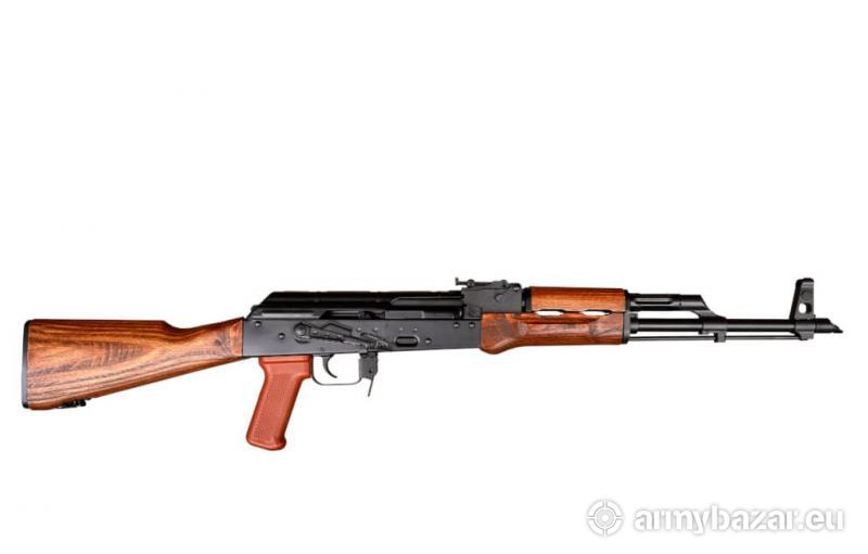 Opis: Karabinek samopowtarzalny AK Sporter S kal. 5,56x45mm (na bazie karabinka AK47) - kaliber: 5,56x45mm - działanie: broń samopowtarzalna, mechanizm działania oparty o długi skok tłoka - długość: 880 mm - długość lufy: 16,3 cala / 415 mm - gwint na końcu lufy - kolba: laminat drewniany - chwyt: polimerowy - łoże przednie: laminat drewniany, olejowany - osłona rury gazowej: laminat drewniany, olejowany - waga: 3,6kg BRAK MAGAZYNKA W ZESTAWIE