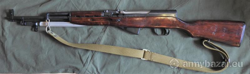 Opis: Karabinek samopowtarzalny Simonowa, kal. 7,62x39 mm. Kupiony w sklepie stacjonarnym do kolekcji. Oryginalny z fabryki w Iżewsku, a nie demobil po kompanii reprezentacyjnej z rozbitą kolbą i łożem. Mało strzelany, większość czasu spędził w szafie. Z kompletem akcesoriów - pas nośny, przybornik, oryginalna ładownica i łódki do ładowania.