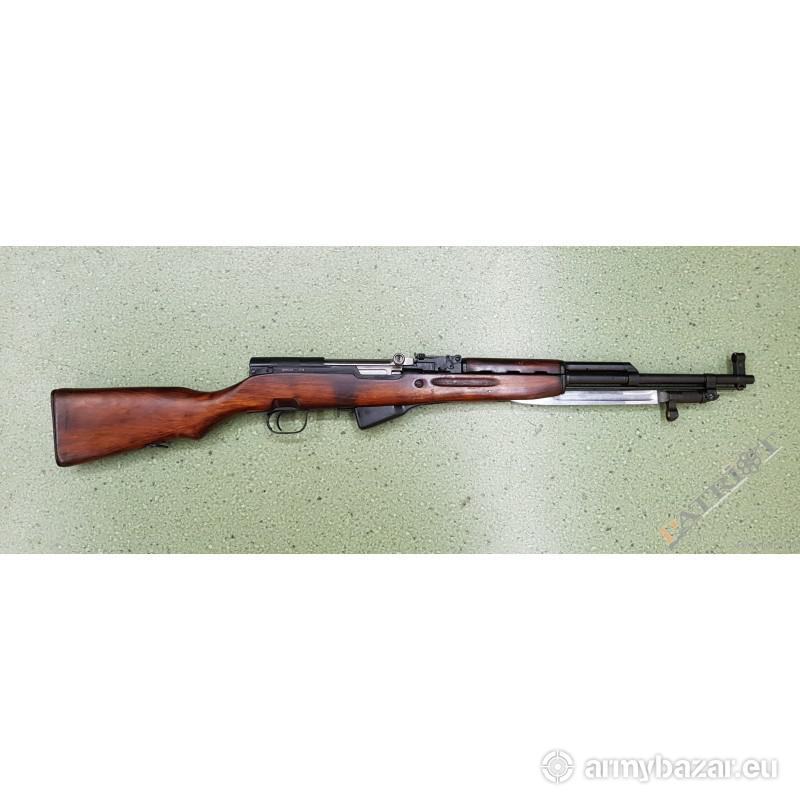 Opis: Dostawa Gratis Oryginalny karabin SKS 7,62x39mm. Stan magazynowy-jak nowy w zestawie przybornik Kaliber: 7,62x39 Lufa: 520 mm Waga: 3.75 kg Długość lufy: 1260 mm z bagnetem, 1020 mm bez bagnetu Magazynek: stały 10 nabojowy Zestaw: bagnet