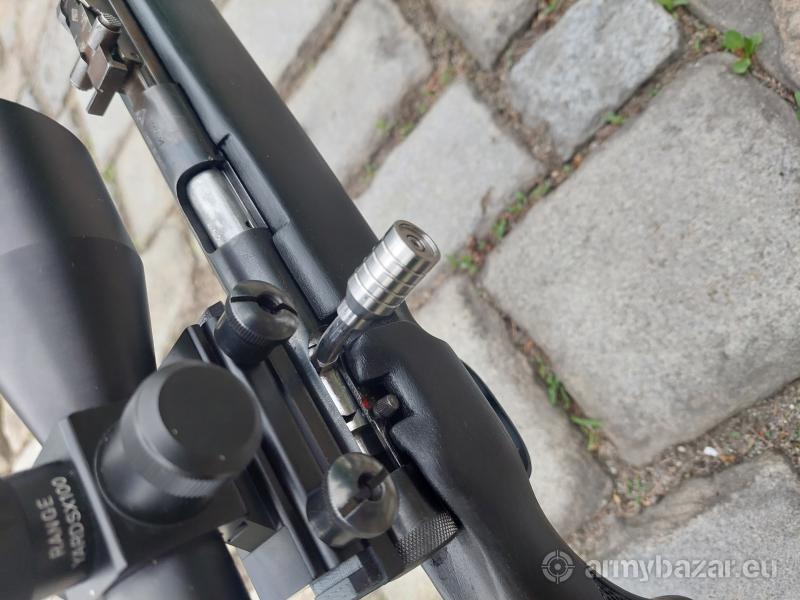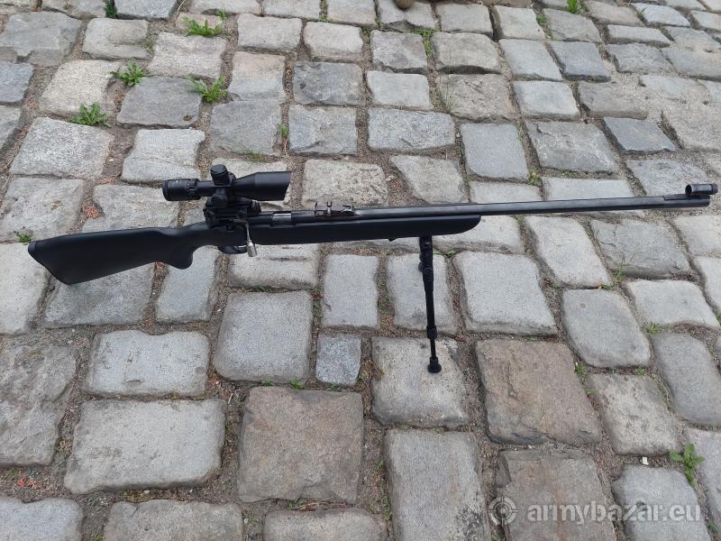Opis: Karabinek po odświeżeniu. Lufa w bardzo dobrym stanie, nie było w nią inferencji. Luneta Theta Optics 2,5-10x40. Przestrzelany. Zostało zmienione: - malowanie osady na czarny mat - stopka kolby wydrukowana z miękkiego filamentu - nowy uchwyt suwadła - szyna 22mm pod bipod, z otworem na zaczep pasa - szyna 22mm pod lunetę - płaski spust