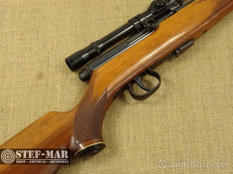 Opis: DARMOWA DOSTAWA PRZEZ CAŁĄ POLSKĘ. Broń używana, sprawna w 100%. Karabinek sportowy wyposażony w wyjmowany magazynek i optykę 4x15 firmy Cosmo. Stan broni bardzo dobry. Stan lufy jest bardzo dobry, gwint wyraźny. Broń po przeglądzie rusznikarskim, przestrzeliwana na strzelnicy. - dł całk: 1050mm - dł lufy: 540mm - waga: 2850g Do broni dołączam fakturę VAT/fakturę VAT marża. W razie pytań proszę dzwonić właściciel 501 682 999, biuro 516 904 226 Możliwość dostarczenia broni we wcześniej uzgodnione miejsce w kraju. BROŃ PALNA! Wymagane jest pozwolenie na broń. Nr broni: 86967 Nr kat: S903