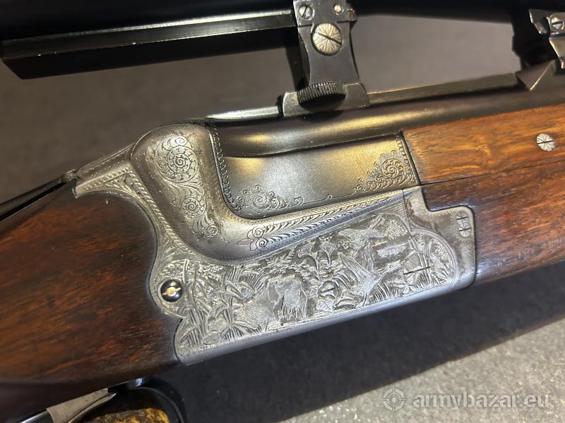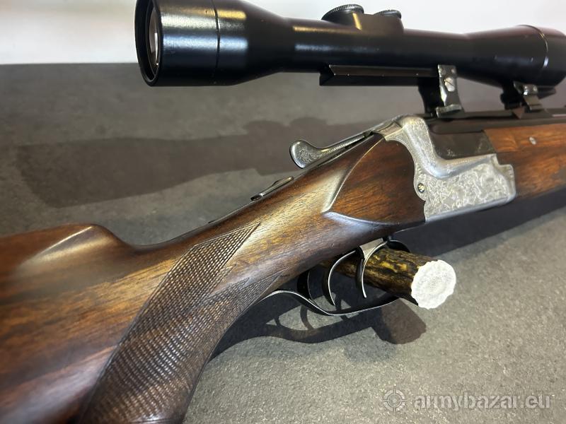 Opis: Kniejówka Merkel, kal.12/70-7x65R Z lunetą Zeiss 6x42S Broń można obejrzeć w sklepie : J.Szymkowiak- Poznań, ul. Bałtycka 79A , 61-055 Poznań
