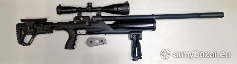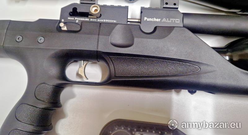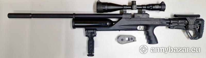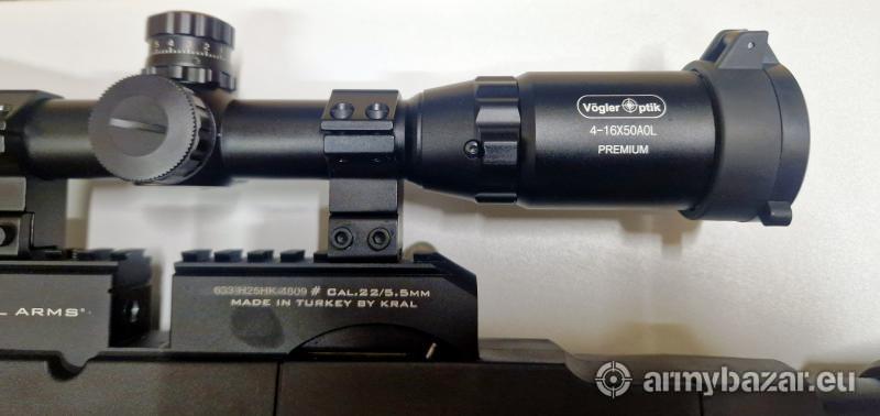 Opis: Nowy karabinek PCP KRAL ARMS PUNCHER AUTO.5.5mm wersja samopowtarzalna EK<17J w komplecie 2 magazynki 10 strzałowe ,1 magazynek 26 strzałowy , luneta Vogler 4-16x50 AO MIL DOT podświetlany krzyż w trzech kolorach ( czerwony,zielony,niebieski) , bipod, walizka
