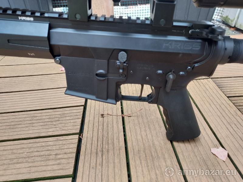 Opis: Kriss w konfiguracji jak na zdjęciach. Zakupiony 4 m-ce temu. Wymieniony spust na Tigertecha jednooporowego z regulacją siły oporu. Szkło WestHunter HD 6-24 X 50 FFP ( siatka w pierwszym planie) . Lubi się z zieloną SK. ( dokładam kilka paczek w komplecie. Możliwa sprzedaż golasa wtedy cena 3990 Okolice Krakowa - Katowic.