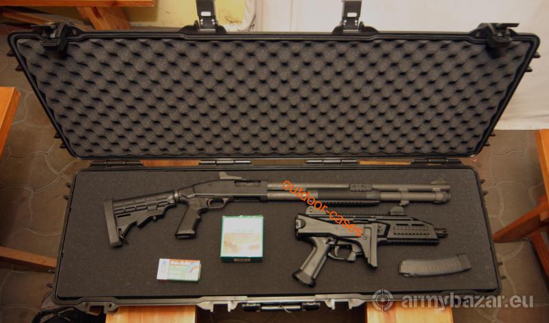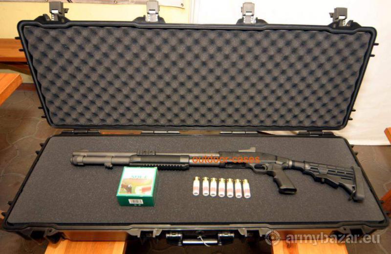 Opis: OKAZJA 1499 zamiast 1890 NOWY całkowicie hermetyczny (IP68) kufer, walizka na broń długą. Idealna do przechowywania i transportowania broni w niekorzystnych warunkach środowiskowych. Szafa na broń nie jest gazoszczelna, więc para wodna dostaje się do szafy a zimna broń (metal) spowoduje kondensacje pary a w rezultacie korozję. W transporcie broń nie jest narażona na wilgoć, pył i udary mechaniczne. Wewnątrz pianka dająca się kształtować poprzez wyrwanie ponacinanych kawałków. Wewnętrzna gąbka to dwie warstwy Wymiary wewnętrzne: 1150x355x155 mm Wymiary zewnętrzne: 1210x430x175 mm Waga: ~8,5kg Cena katalogowa 1.890zł http://www.outdoor-cases.pl/model-72-czarny-si-gabka-p-65.html