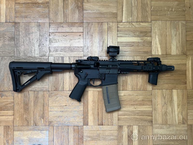 Opis: Sprzedam karabinek LANTAC LA SF-15 PDP z lufą 7,5”. Do karabinka dorzucam następujące akcesoria: -przyrządy celownicze FAB Defense -chwyt przedni od Strike Industries -kolba magpul ctr -magazynek magpul (kolor do wyboru) Części które zostały wymienione: -regulowany blok gazowy od Strike Industries -selektor ognia magpul ESK -spust Mimtac (stary spust dorzucam w gratisie) -bird cage od ASE Utra umożliwiający montaż moderatora dźwięku -buffer h2 4.6 oz -dźwignia przeładowania Radian Raptor SD Przebieg to około 500-600 sztuk amunicji. Cena do lekkiej negocjacji. Zapraszam do kontaktu.