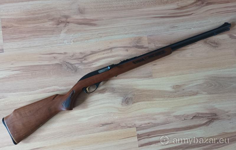 Opis: Samopowtarzalny Marlin 99C, 22LR, za oceanem podstawowy konkurent Rugera 10/22. Kaliber: 22LR Magazynek: 18 szt Cena: 1200 zł https://en.wikipedia.org/wiki/Marlin_Model_60 Limitowana edycja z pozłacanym spustem i bardzo celną lufą Micro Groove Barrel. Lufa ideał, osada drewniana, lekkie rysy na kolbie. Ma szynę 11 mm do montażu optyki.