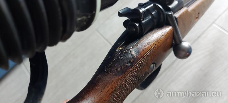 Opis: Sprzedaje starocia, który zalega mi szafie po dziadku. W latach 90 zmiana kalibru na 30-06 wtedy też dokonana konwersja lunety do 8x50. Nie mam pojęcia w jakim zakładzie. Na sztucerze jest montaz hakowy. Bez owijania w bawełnę. Stan wizualny tragiczny, lufa wytarta, ale w kartkę A5 trafia na 100m (a przynajmniej trafiał 2 lata temu). Zamek działa elegancko. Może ktoś potrzebuje do jakiegoś projektu lub Bóg wie do czego. Oddam w całości jak na zdjęciach wraz z optyka za 300 zł jak stoi.