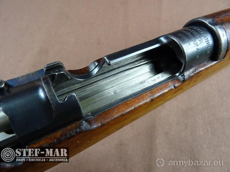 Opis: Broń używana, sprawna w 100%. Ulepszona wersja Mausera M1893. Broń całkowicie zgodna numerycznie! Stan bardzo ładny. średni, ale broń idealna do kolekcji. Na końcu lufy gwint. Broń po przeglądzie rusznikarskim, przestrzelona na strzelnicy Dane techniczne broni: - kaliber: 6,5x55 - długość całkowita: 1262mm - długość lufy: 765mm - waga: 4020g Do broni dołączam fakturę VAT/fakturę kupna-sprzedaży W razie pytań prosze dzwonić właściciel 501 682 999, biuro 516 904 226 Możliwość dostarczenia broni we wcześniej uzgodnione miejsce w kraju. BROŃ OSTRA! Wymagane jest pozwolenie na broń. Numer broni: 20282 Numer katalogowy: R763