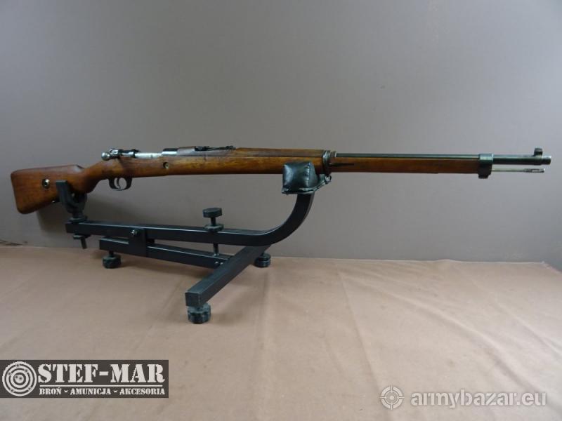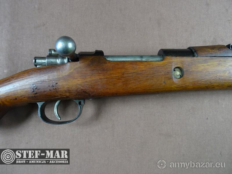 Opis: Broń używana, sprawna w 100%. Stan broni dobry, broń zadbana. Broń najprawdopodobniej po I WŚ przekazana Turcji, gdzie odnowiona i wprowadzona w obrót w 1954r. Stan lufy jest dobry, gwint wyraźny. Broń po przeglądzie rusznikarskim, przestrzelona na strzelnicy Dane techniczne broni: - kaliber: 8x57 IS - długość całkowita: 1256mm - długość lufy: 762mm - waga: 4330g Do broni dołączam fakturę VAT/fakturę kupna-sprzedaży W razie pytań prosze dzwonić właściciel 501 682 999, biuro 516 904 226 Możliwość dostarczenia broni we wcześniej uzgodnione miejsce w kraju. BROŃ OSTRA! Wymagane jest pozwolenie na broń. Nr broni: 5945 Nr kat: R621