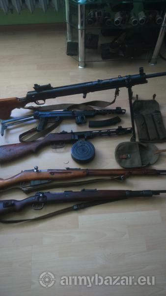 Opis: Witam, Sprzedam : 5 sztuk mauser K98 Jugo cena 2200 zł 1 szt Mauzer zw 28 cena1800 zł 8 szt MosIN ZW 1891/30 DŁUGI CENA 1500zł 1 PPSZ41 1300zł 1 PPS 1200zł 1 DP28 z dwoma talerzami 2500zł Broń na zakup co celów rekonstrukcyjnych więcej zdjęć mogę wysłać na Priv