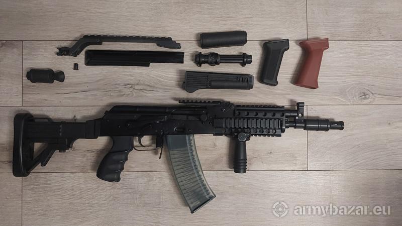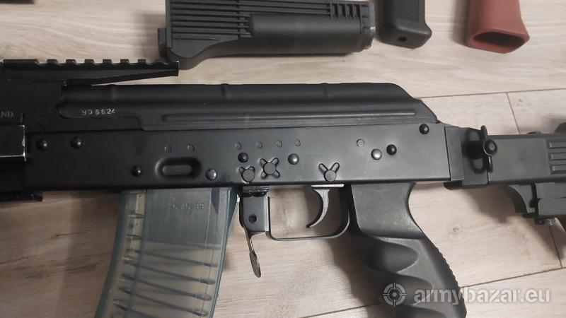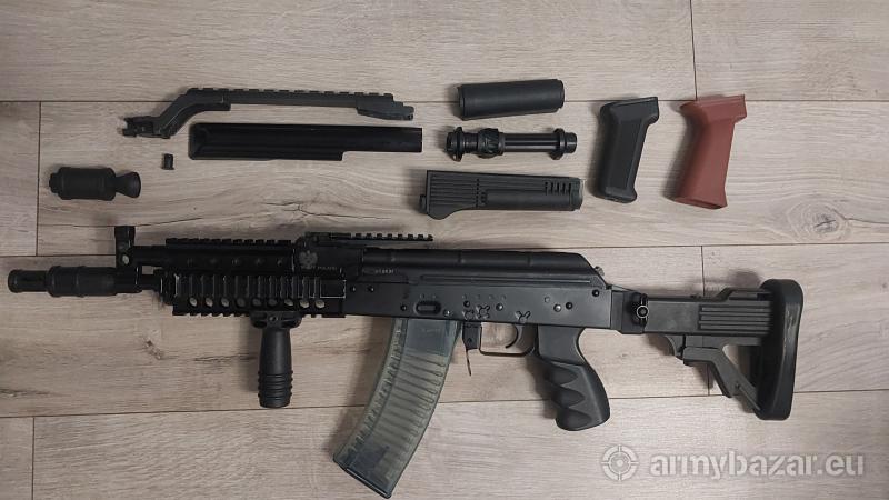 Opis: Witam Na sprzedaż mam karabinek mini jack w kalibrze 5,45 x 39 robie porządki i tak właśnie tu się znalazł ten Jacek. Przebieg 30 szt. amunicji, broń ma 7miesięcy i niski numer seryjny jeśli to ma znaczenie. Z wprowadzonych zmian to odnitowana szyna boczna, szczerbinka wymieniona na szynę svrn, dodany aluminiowy zaczep suwadła i cuwadło pomalowsbe w czarny kolor. W cenie 4100 zł jest karabinek,magazynek, pudełko, instrukcja, magazynek 30 nabojowy, i zwykłe plastiki dla zainteresowanych za dodatkową dopłatą mam elementy z mini beryla widoczne na zdjęciach Najbardziej interesowała by mnie zamiana na: AUG, M16, AK GN, CQ-A tylko lufa 18 cali, pakistańskie MP5 możliwość dopłaty z obu stron.