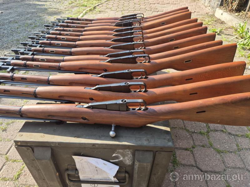 Opis: Mosiny wz. 44 kal. 7,62x54R polskie FB Radom! tym razem wjechały przepiękne polskie Mosiny wz. 1944 z jedyna słuszną 11 w owalu - FB Radom. Karabiny przepięknie zachowane, zgodne numerycznie. Po dokładnych oględzinach można stwierdzić, że broń raczej nie była używana pomimo ponad 70 lat zalegania w czeluściach magazynowych. Egzemplarze w wyśmienitym stanie, oksyda nie powycierana, marginalne zarysowania osady niektórych egzemplarzy od wieloletniego składowania. Lufy wewnątrz mennicze, lustrzane i nieskazitelne. Jakość wykonania karabinów przez polskie zakłady jest bajeczna... Liczba sztuk w tym stanie mocno ograniczona. Zapraszam do rezerwacji. 5500zł / szt www.gun-dealer.pl 508 109 402