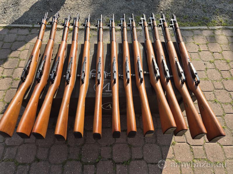 Opis: Mosiny wz. 44 kal. 7,62x54R polskie FB Radom! tym razem wjechały przepiękne polskie Mosiny wz. 1944 z jedyna słuszną 11 w owalu - FB Radom. Karabiny przepięknie zachowane, zgodne numerycznie. Po dokładnych oględzinach można stwierdzić, że broń raczej nie była używana pomimo ponad 70 lat zalegania w czeluściach magazynowych. Egzemplarze w wyśmienitym stanie, oksyda nie powycierana, marginalne zarysowania osady niektórych egzemplarzy od wieloletniego składowania. Lufy wewnątrz mennicze, lustrzane i nieskazitelne. Jakość wykonania karabinów przez polskie zakłady jest bajeczna... Liczba sztuk w tym stanie mocno ograniczona. Zapraszam do rezerwacji. 5500zł / szt www.gun-dealer.pl 508 109 402