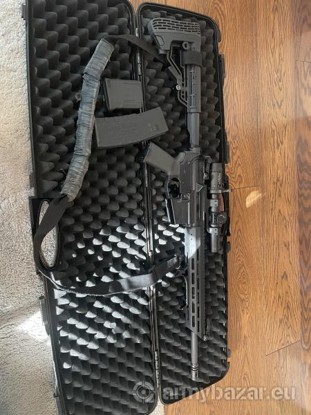 Opis: Mossberg MMR 16" z komorą wild 5.56/223 i łożem k-mod. Kupiony w listopadzie 2021 w Gun Center. Karabinek świeży, nalot nie przekracza 200 pestek. Zestaw golas czyli karabinek, jeden magazynek, stałe przyrządy celownicze i kufer 3900. Zestaw full czyli golas plus drugi magazynek, zawieszenie wciśnij kropka, składane przyrządy, luneta westhunter 1-6x24, chwyt taktyczny widoczny na zdjęciach to kwota 4700.