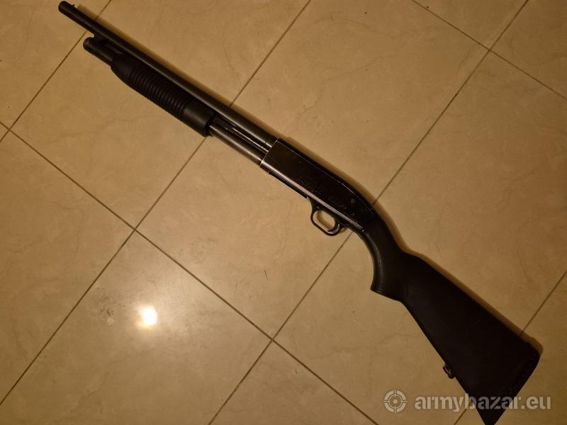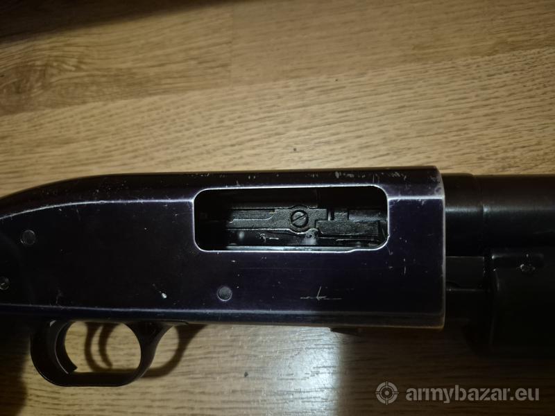 Opis: : Sprzedam strzelbę typu pump action Mossberg Maverick. Strzelba używana, w pełni sprawna, stan wizualny dobry - jest poobijana trochę.