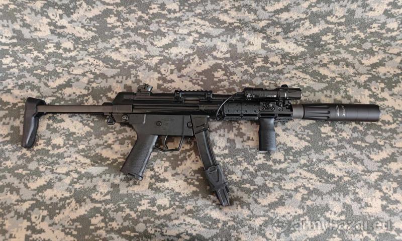 Opis: Do sprzedania MP5 A2/A3 POF W skład zestawu wchodzi: * Pistolet samopowtarzalny MP5 A2 * Magazynek 30 naboi + uchwyt gumowy 6 sztuk * Lower Magpul + bezpiecznik * Łoże aluminiowe M LOK + osłony + chyt przedni Magpul MVG * Latarka Olight Odin Mini + włącznik żelowy + montaż * Kolba składana A3 * Tłumik A-TEC SMG MP-5 TRI-LUG * Montaż niski pod optykę * Pas nośny MIWO PRASZKA * Zestaw do czyszczenia broni