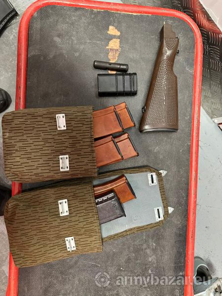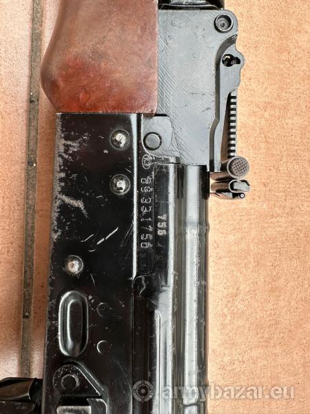 Opis: MPi-AK-74N, kal. 5,45x39mm. NRDowska wersja AK74. Nigdy nie poszla na eksport ze wzgledu na ograniczenia licencyjne z ZSRR. Jedyna wersja wojskowa seryjnie produkowana z szyna montazowa do optyki. Lufa bdb. Sprzedaje w trzech wariantach: 1 - karabinek z magazynkiem ograniczonym do 10 szt., kolba stala i skladana, zestawy do czyszczenia - 20 000 PLN 2 - karabinek z 6 magami w tym 5 bakelitowych, kolba stala i skladana, zestawy do czyszczenia i 1000 szt. amunicji - 22 000 PLN 3 - Wszystko lacznie z NPZ1 PK1 - 24 000 PLN