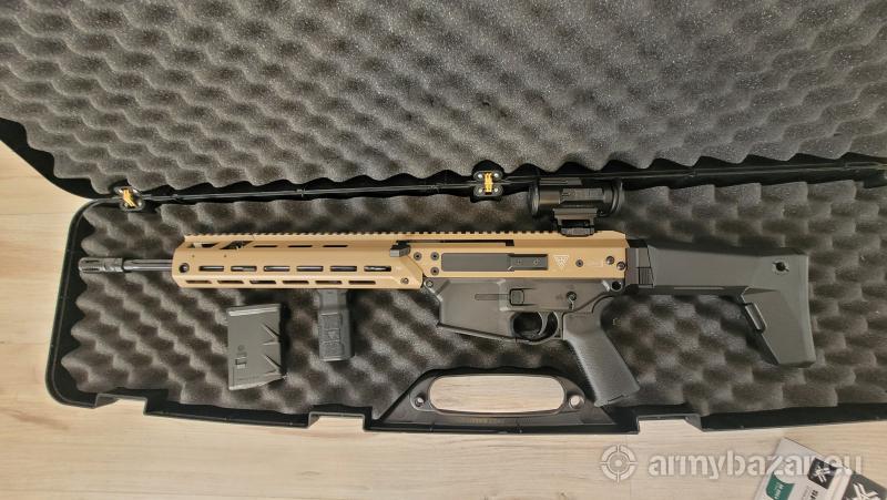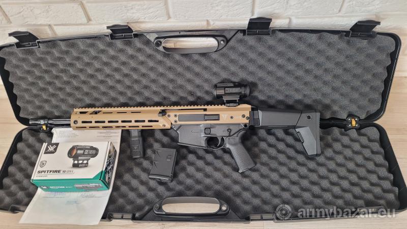 Opis: Sprzedam Grota A2 FDE kaliber 223 rem. z długim łożem, praktycznie nieużywany wystrzelone dokładnie 40 szt amunicji, jedna paczka w celu ustawienia kolimatora i druga dla fanu.Zakupiony jako nowy,stoi w szafie zakonserwowany jeszcze fabrycznym olejem bez najmniejszych śladów używania. Do karabinka założony jest świetnej jakości kolimator pryzmatyczny Vortex Spitfire HD Gen II z powiększeniem 5X i dożywotnią gwarancją, również zakupiony jako nowy. Wszystko to co dała fabryka i co widać na zdjęciach czeka na nowego właściciela. Dla zdecydowanego kupca dwie paczki amunicji gratis. Za cenę podaną w ogłoszeniu zawiozę pod dom. Chcesz kupić dzwoń 888887274 a nie pisz.
