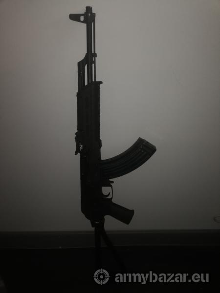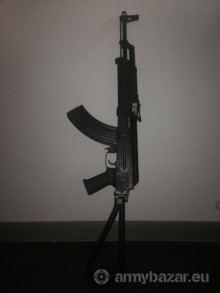 Opis: Na sprzedaż nowy AKM w kal. 7.62x39. Od zakupu nie wystrzelił ani razu. Trochę doinwestowany - ramowa kolba skladana a'la stary beryl cz AKSU, przednie łoże magpula. Na końcu lufy standardowy gwint 14x1l z nakrętka. Fabrycznie zamontowana szyna boczna pod montaż do optyki. Lufa chromowana. Na start dorzucam trochę amunicji.