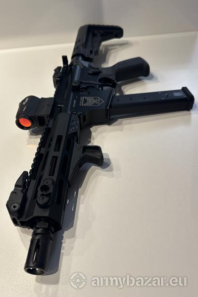 Opis: Karabinek w kalibrze pistoletowym - PCC. Zasilany amunicją 9 mm Para (9x19 mm) z magazynków do pistoletów Glock. Lufa 9”. Przelot ok. 150 szt. W zestawie z karabinkiem: składane przyrządy celownicze DLG, dwustronna dźwignia przeładowania, dwustronny selektor ognia, chwyt DLG, regulowana kolba DLG, flaga bezpieczeństwa. Warszawa i okolice. Nr tel - 506 772 084. Możliwość negocjacji.