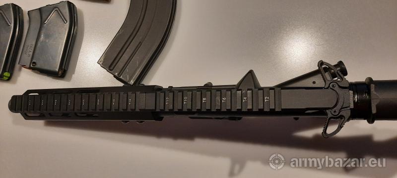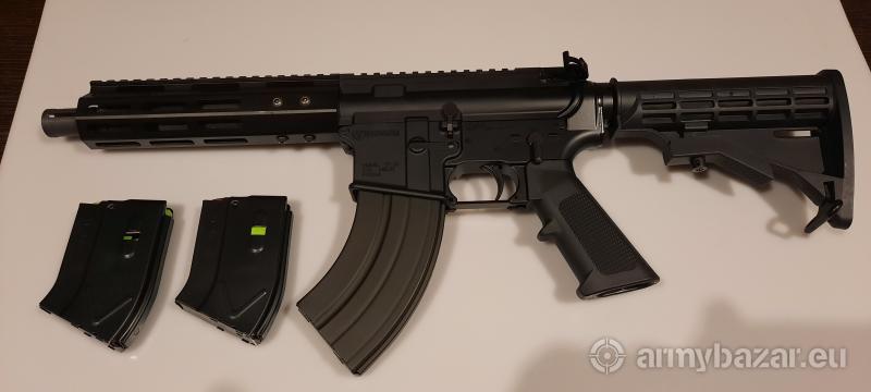 Opis: Firma FedArm jest znanym na rynku amerykańskim producentem karabinków z rodziny AR. Ten model to AR-15 o lufie długości 7,5" wykonany w całości w zgodności ze standardami wojskowymi (mil-spec). Przednie łoże posiada górną szynę w standardzie Picatinny oraz boczne i dolną szynę w standardzie M-LOK. Kaliber 7,62x39. W zestawie trzy magazynki - jeden 30 nabojowy i dwa po 10 naboi , wymieniona dźwignia przeładowania na obustronną . Stan jak nowy - kolekcjonerski - wystrzelono tylko 50szt.amo. więcej info pod nr. 518550788.