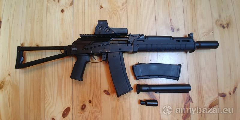 Opis: Krotka wersja karabinka Saiga mk102 Wymienione elementy: Łoże Magpul Zhukow-u, rękojeść Magpul MOE AK. Zestaw zawiera 2 oryginalne magazynki 30nb. oraz jeden 10nb. Szynę boczną : http://sklep.magazynuzbrojenia.pl/pl/p/montaz-Picatinny-do-Saigi/2458 oraz adapter do montażu kolby AR z prowadnicą (nie zamontowane, wymaga drobnych modyfikacji) dodatkowo tłumik ognia http://sklep.magazynuzbrojenia.pl/pl/c/AK-i-pochodne/167/2 Wszystkie elementy są oryginalne i nie pochodzą z chińskich portali. Z karabinka wystrzelono ok 800szt amunicji. Broń w bardzo dobrym stanie, zadbana i regularnie czyszczona. Dodatkowych informacji udzielę na życzenie. Tylko osoby z odpowiednimi uprawnieniami.