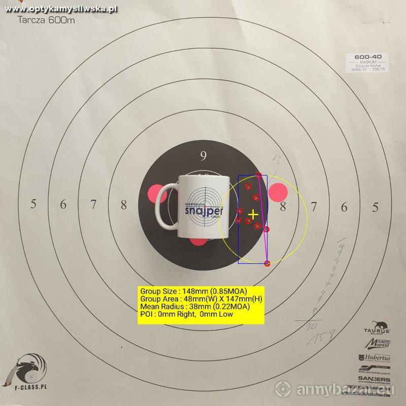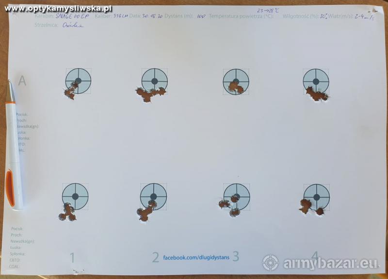 Opis: Sprzedam Savage 110 Elite Precision w kalibrze .338 Lapua Magnum. Z karabinu wystrzelałem 1 miejsce w kategorii Magnum 1200m Pucharu Polski, udało się również uzyskać II miejsce w generalce Magnum i trafienia na 1848m (Zielonka). W Skarżysku udało się uzyskać skupienia rzędu 0.85MOA na 600m w 10 strzałach. Przebieg około 500 szt., w zestawie dorzucę łuski strzelane z tego karabinu. Chętnie sprzedam z całym wyposażeniem - w tym hamulcem Fat Bastard, montażem Spuhr, lunetą Delta Stryker, karbonowym bipodem a nawet kompletnym sprzętem i komponentami do elaboracji 338 LM. Karabin będzie wyzerowany, podam również nastawy na poszczególne dystanse oraz dane elaboracyjne - brać i strzelać :)