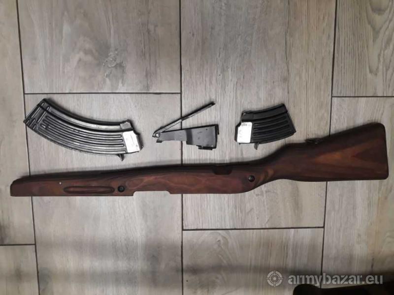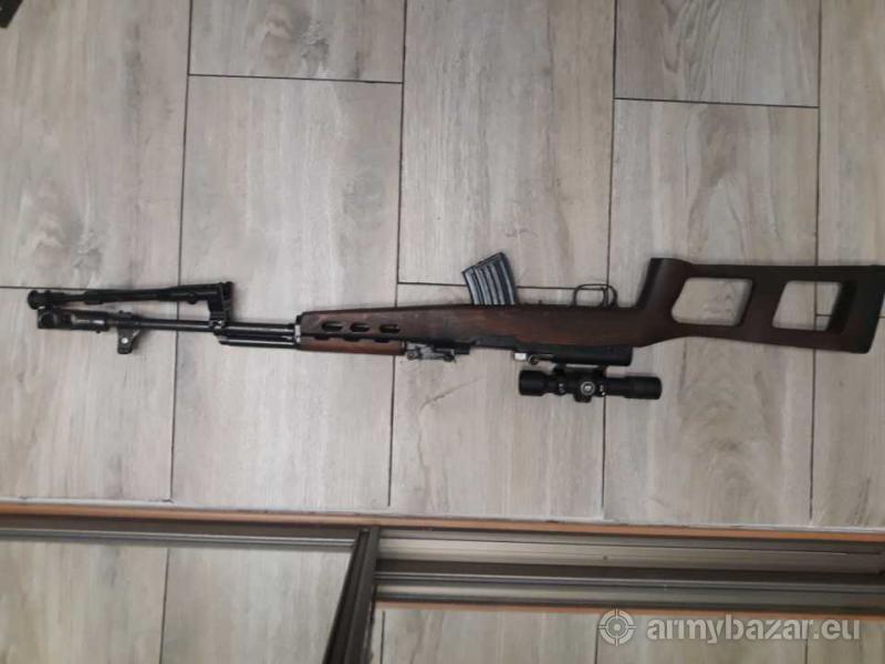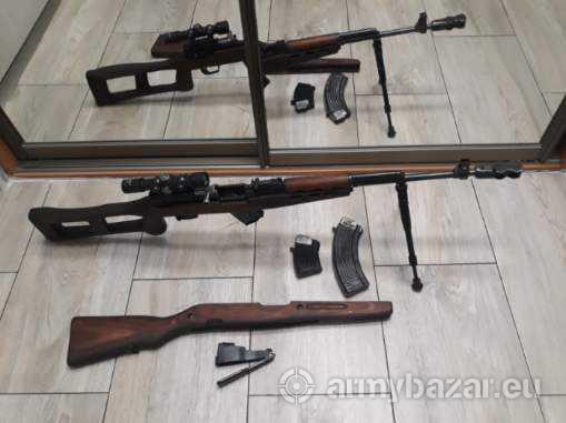 Opis: SKS z montazem bocznym calowym mocowany do komory zamkowej nie do pokrywy co daje powtarzalnosc strzalu. Trzy magazynki zaadoptowane od Ak 10cio i 30sto nabojowe kolba ciezka debowa, kapensator, bipod. Oryginalna kolba i magazynek. Optyka pogladowa - uszkodzona 1400 zl komplet