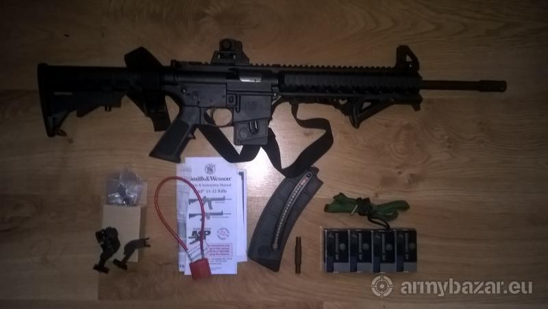 Opis: Sprzedam Smith & Wesson M&P15-22 ze wszystkim co na zdjęciu. Karabinek kupiony przeze mnie jako nowy w 2016. Przebieg 1800 kulek. Dodatkowo pas 3 punktowy, magazynek poj. 25 i 10, sznur do czyszczenia, mechaniczne przyrządy ze skośnym montażem, umożliwiające współkorzystanie z nich i ew. celownika optycznego, klucz do muszki. 200 sztuk rws. Cena 2100 + promesa .Warszawa/Piaseczno tel 501 jeden dwa jeden trzy trzy 1.