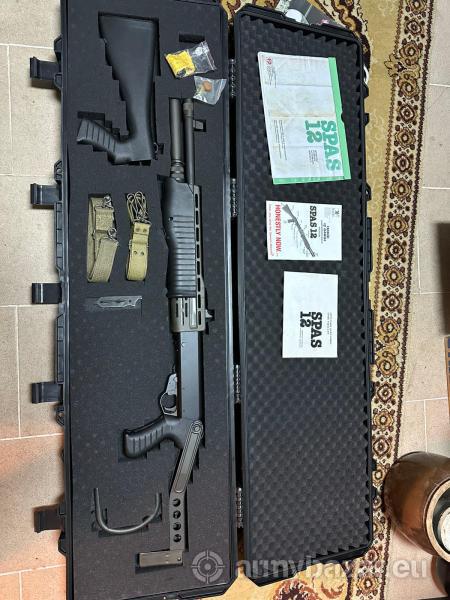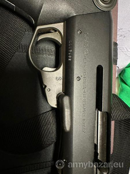 Opis: Spas 12. Lufa lustro, wczesny bezpiecznik. W zestawie oryginalny hak, buffer suwadla nieuzywany, 2 oryginalne pasy, oryginalna kolba stala, 100 szt amunicji, skrzynia, tool do rozkladania, instrukcje. Lufa lustro, nigdy z niego nie strzelilem.