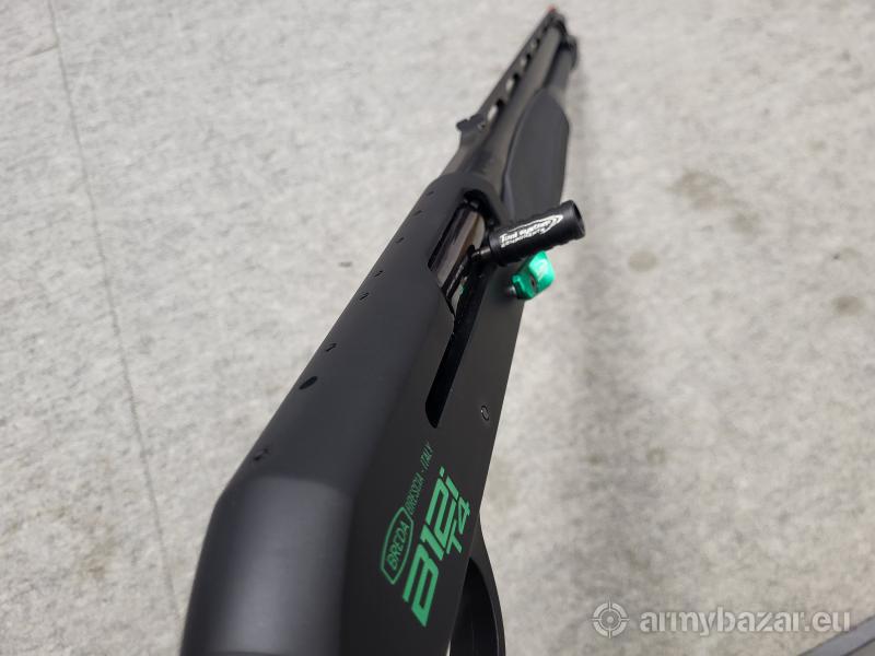 Opis: Strzelba marki BREDA model BN12I T4 kal. 12/76. Strzelba idealna do dynamiki. Posiada powiększoną dźwignię zrzutu zamka Toni System, powiększoną dźwignię przeładowania Toni System, poduszkę amortyzującą Toni System, posiada również założony przedłużony magazynek wykonany z karbonu o pojemności 10 naboi.