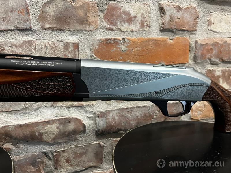 Opis: Strzelba Eternal Spectacular XL 28" kal. 12/76. Strzelba używana, zakupiona w naszym sklepie w 2025 roku, stan b. dobry. Właściciel wymienił muszkę na światłowodową (oryginalna w komplecie wraz z czokami i pokrowcem). Magazynek rurowy 4+1, długość lufy 28". Produkt koncesjonowany, dostępny za okazaniem odpowiednich dokumentów. Tel. kontaktowy 737 396 130 lub przez guns-ammo.pl