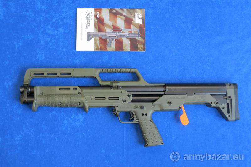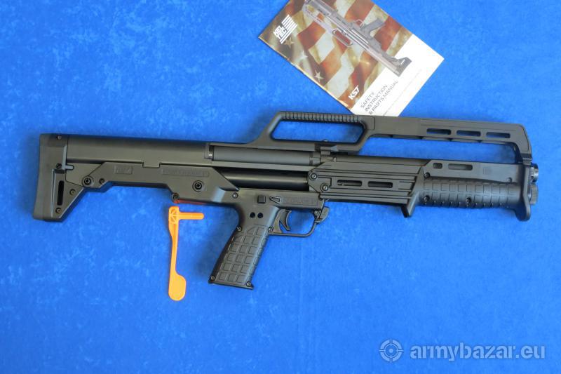 Opis: Strzelba powtarzalna Kel Tec KS7 z pojedynczym magazynkiem. Kaliber: 12ga komora 3" 12/76, Pojemność magazynka: 6 Waga: 2.5kg Długość całkowita: 26.1” / 66 cm Długość lufy: 18.5” / 47 cm Czok stały typu cylinder Opór języka spustowego: 5 lbs / 22 N