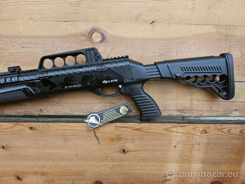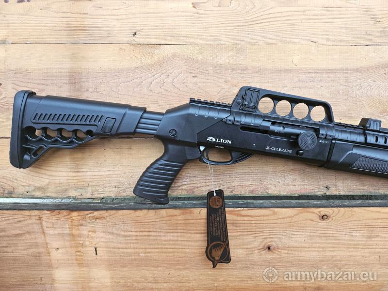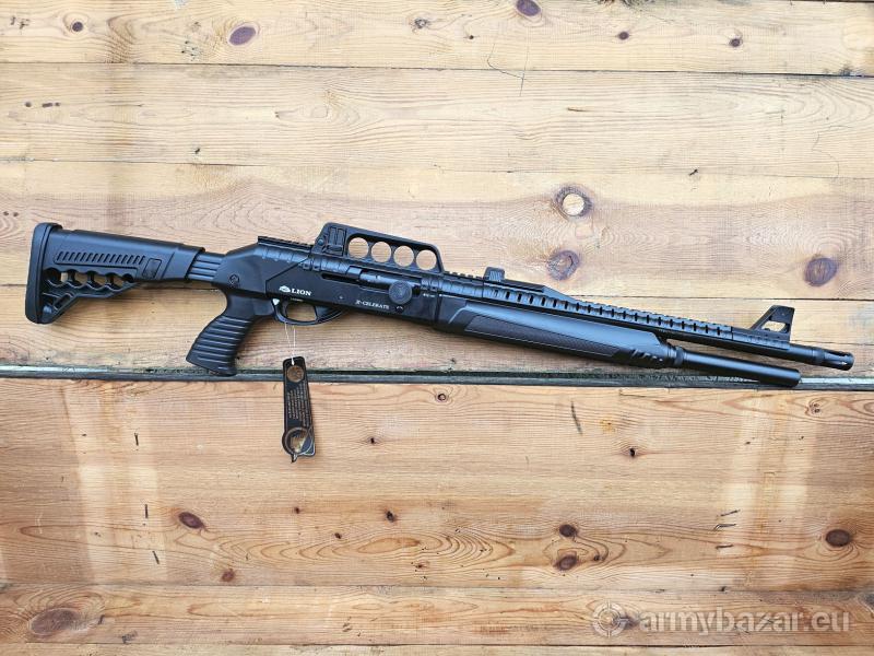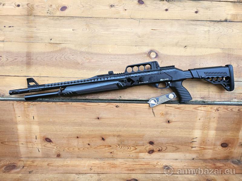 Opis: Strzelba samopowtarzalna Lion X-400 w kal. 12/76. Kolba rozsuwana, chwyt pistoletowy i łoże wykonane z polimeru. Szyna Picatinny do montażu Kolimatora. Lufa wykonana ze stali 4140 chromowana z tłumikiem płomienia. Muszka światłowodowa. Magazynek rurowy 7+1. Długość całkowita 110-100 cm. Długość lufy 49 cm. W zestawie czoki. Amortyzująca stopka kolby. Lokalizacja Brzoza pod Bydgoszczą. Tel. 790-280-454