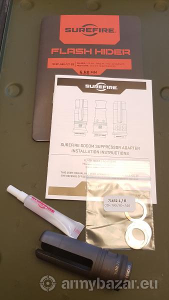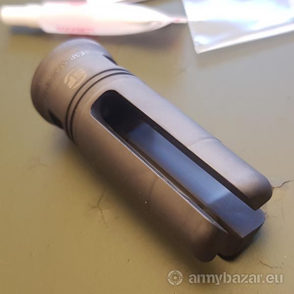 Opis: Do sprzedania jest fabrycznie nowy, nigdy nie używany tłumik płomienia prod. firmy SUREFIRE, typu 3-prong / montaż pod tłumik huku / dźwięku lub dyfuzor (np. SUREFIRE WARDEN). Redukuje do 99% płomienia wylotowego z lufy, sprawdzona i solidna konstrukcja. Stosowany przez amerykańskie siły specjalne (US SOCOM). model: SF3P-556-1/2-28 kaliber: 5.56 / .223 gwint: 1/2-28 przeznaczony do: AR-15 / M4 / M16 W zestawie cały komplet od producenta: tłumik płomienia SF3P, instrukcja, zestaw podkładek dystansujących, klej anaerebowy ROCKSETT, W razie wątpliwości zapraszam na stronę www producenta: https://www.surefire.com/products/suppressors-division/muzzle-devices/socom-3-prong-flash-hider/