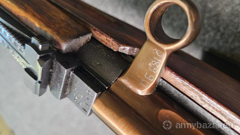 Opis: Karabin SWT40 kal.7,62x54R wyprodukowany w Tule w 1942 roku. Broń po typowym sowieckim remoncie wojskowym w arsenale nr.1. poremontowo zgodny numerycznie, część numerów naniesiona elektropisem. Karabin w stanie oryginalnym, bez żadnych przeróbek i stempli eksportowych. Przewód lufy bardzo ładny, błysk. tel.605200538