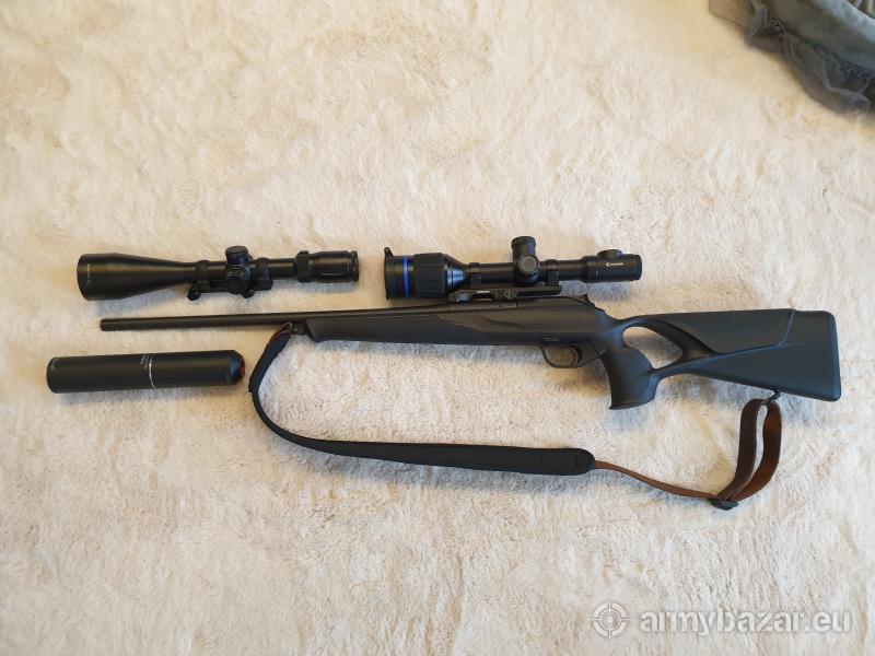 Opis: Sprzedam cały komplet. Sztucer , pasek , pokrowiec wszystko orginał Blaser. Luneta Thermion 2 XQ50 . Tłumik luneta Delta 2,5 - 10x56. Do wszystiego orginalne kartony. Tel. 502 711 361