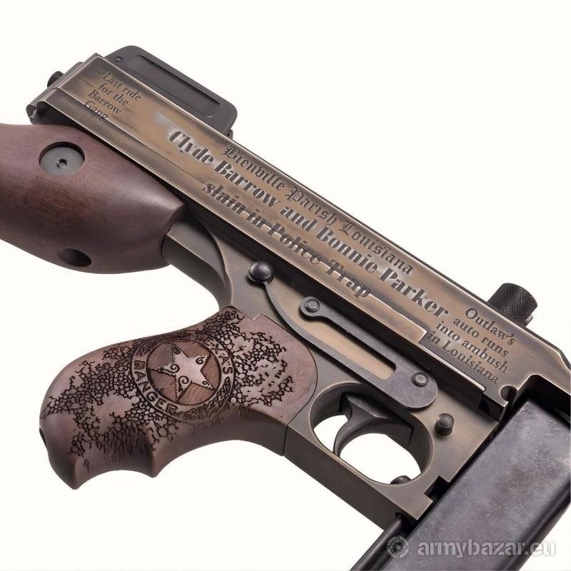 Opis: Jedna z dwóch sztuk, które trafiły do Europy i zarazem ostatnia do nabycia ! Edycja specjalna „Bonnie and Clyde” Firma Auto‑Ordnance oddaje hołd tej legendarnej historii poprzez wyjątkowy, niestandardowo wykończony i bogato grawerowany model Thompson 1927A1 Custom. Każdy egzemplarz zdobiony jest grawerunkami nawiązującymi do losów słynnej pary, w tym historycznymi fotografiami, listem gończym oraz nagłówkami prasowymi z epoki. W zestawie 2 magazynki pudełkowe i 1 magazynek bębnowy. Kaliber 45 acp Kontakt: 87-100 Toruń ul. Skłodowskiej-Curie 73J, tel. 538270997, 538270998 email : sklep@flashider.pl www.flashider.pl https://www.facebook.com/flashidertorun/?locale=pl_PL