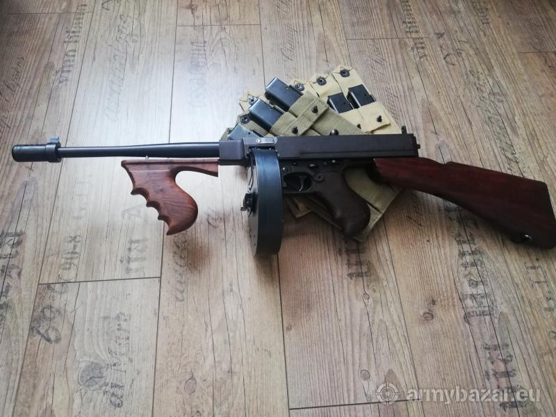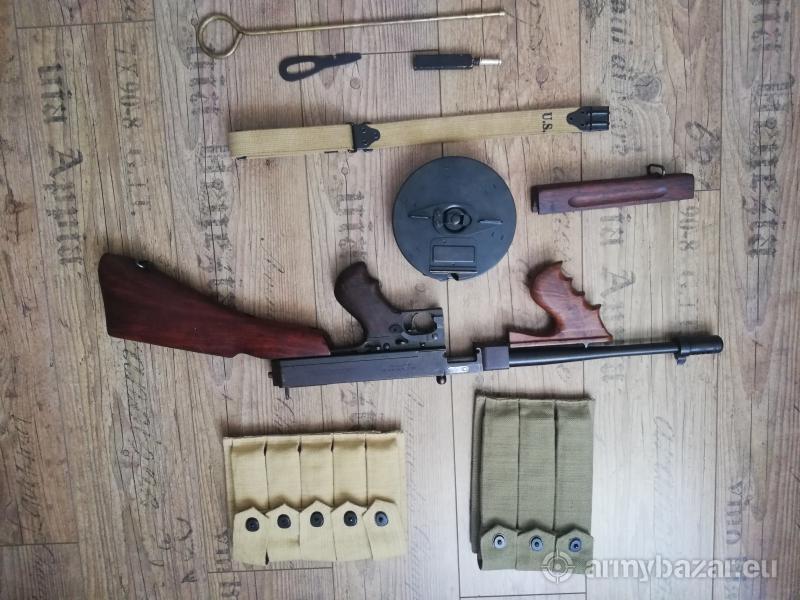 Opis: Sprzedam Thompsona widocznego na zdjęciach wraz z dodatkami, W skład zestawu wchodzi : Thompson w bardzo dobrym stanie, wycior oliwiarka, kluczyk, pas, Dwie ładownice, jedna na 3x30 druga 5x20 do tego oczywiście magazynki plus magazynek bebenkowy, przedni chwyt pistoletowy, plus orginalnr łoże, wszystko w bardzo dobrym stanie, możliwa zamiana ma Maxima