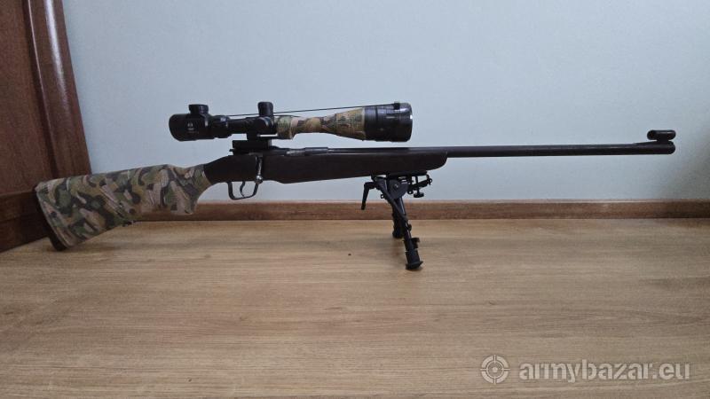 Opis: Sprzedam karabinek, repetier czy 4-takt, Toz12, celny, z optyką 1-24/50, dodatkowo diopter, osada drewniana. Dwójnóg nie jest przedmiotem sprzedaży.