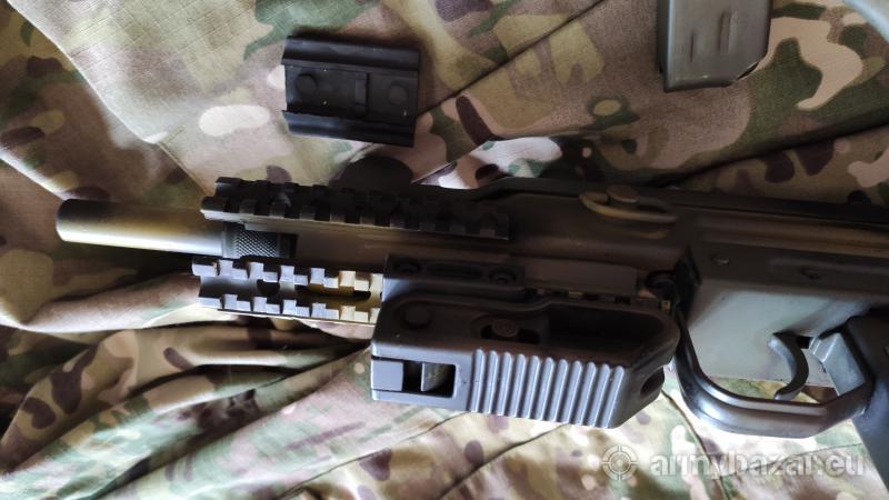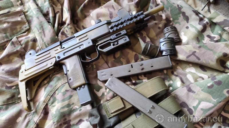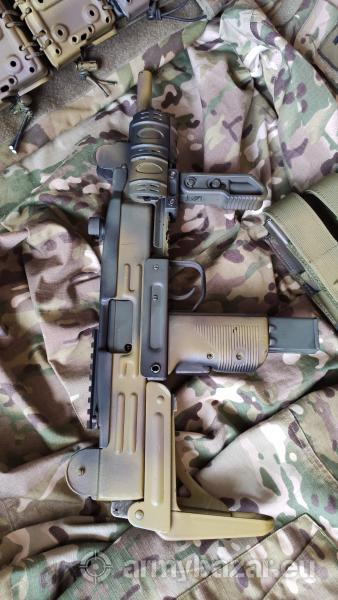 Opis: Uzi ( Suzi 2018r ) 9mm Luger. Lufa w środku w stanie bardzo dobrym. Trzyma skupienie znakomicie. Semiauto. 3 magazynki ( 2x32 i 1x25 ) Broń z łożem alu z trzema szynami Picantynny. Pokrywa zamka z montażem Picantynny pod kolimator. Sprzedaję z chwytem przednim - składanym. Kolimator nie wchodzi w skład broni. Pistolet pokrywa warstwa farby do broni Fosco. Stan broni jak na używany w Izraelskiej armii jest dobry. Wnętrze wygląda jak nowe. Uzi nie ma skłonności do zacięć. Łuski wyrzuca prawidłowo. Lokalizacja Częstochowa. Rozważę zamianę na G19, G17 III generacji lub G26 III lub IV